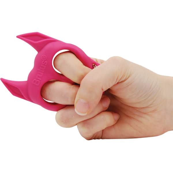 Brutus is the only public safety bulldog keychain accessory that can be attached to keys or easily stowed away. Made of impact resistant ABS plastic, this keychain accessory is so strong it will give you the power of steel wrapped in a defenseless looking dog-shaped keychain accessory. Guard yourself against unwanted advances: put your fingers through the eyes of Brutus and watch the tips of his ears transform into pointed jabbers that will keep any attacker at bay. Available in several different colors. You can protect yourself in black, pink, and purple. Make Brutus your own personal guard dog today!